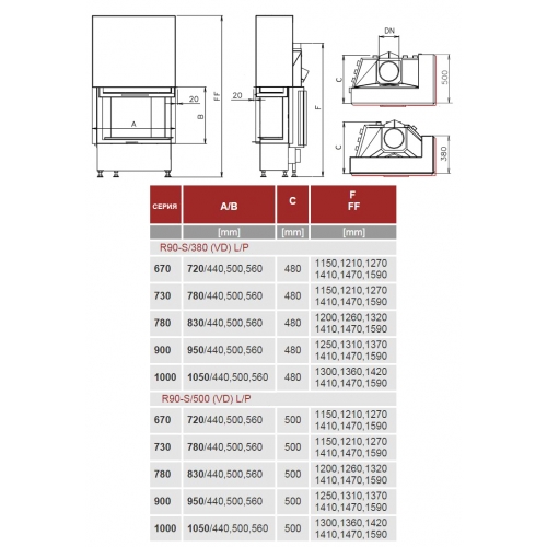 Каминная топка Kobok Corner 1050 VD R90-S/380 L/P