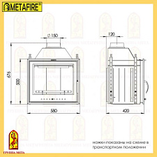 Корпус каминной топки выполнен из жаропрочной стали, колосники и патрубки из чугуна.